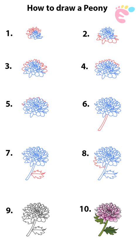 Easy Step By Step Peony Drawing